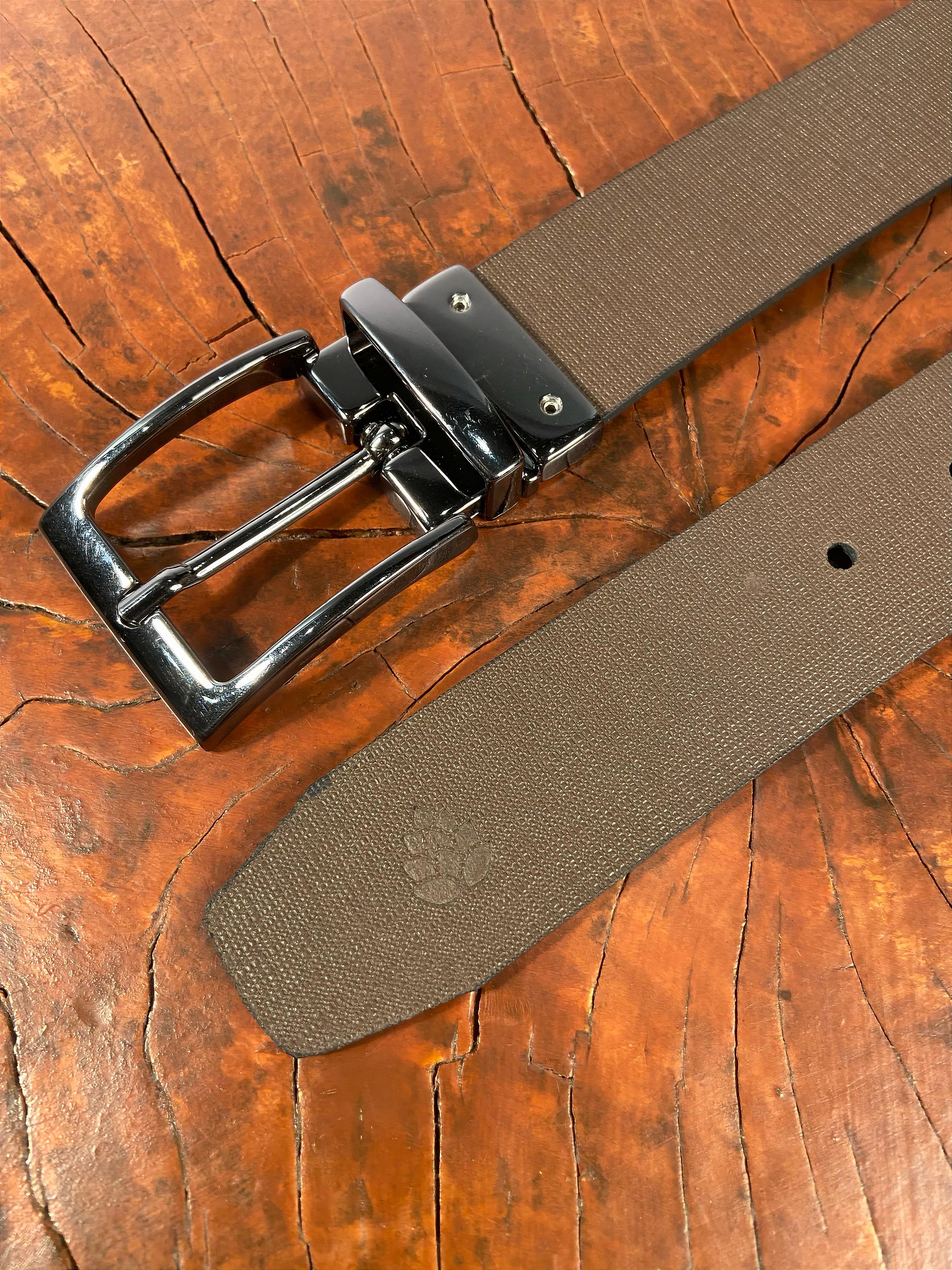 Cinto em couro, dupla face marrom e preto